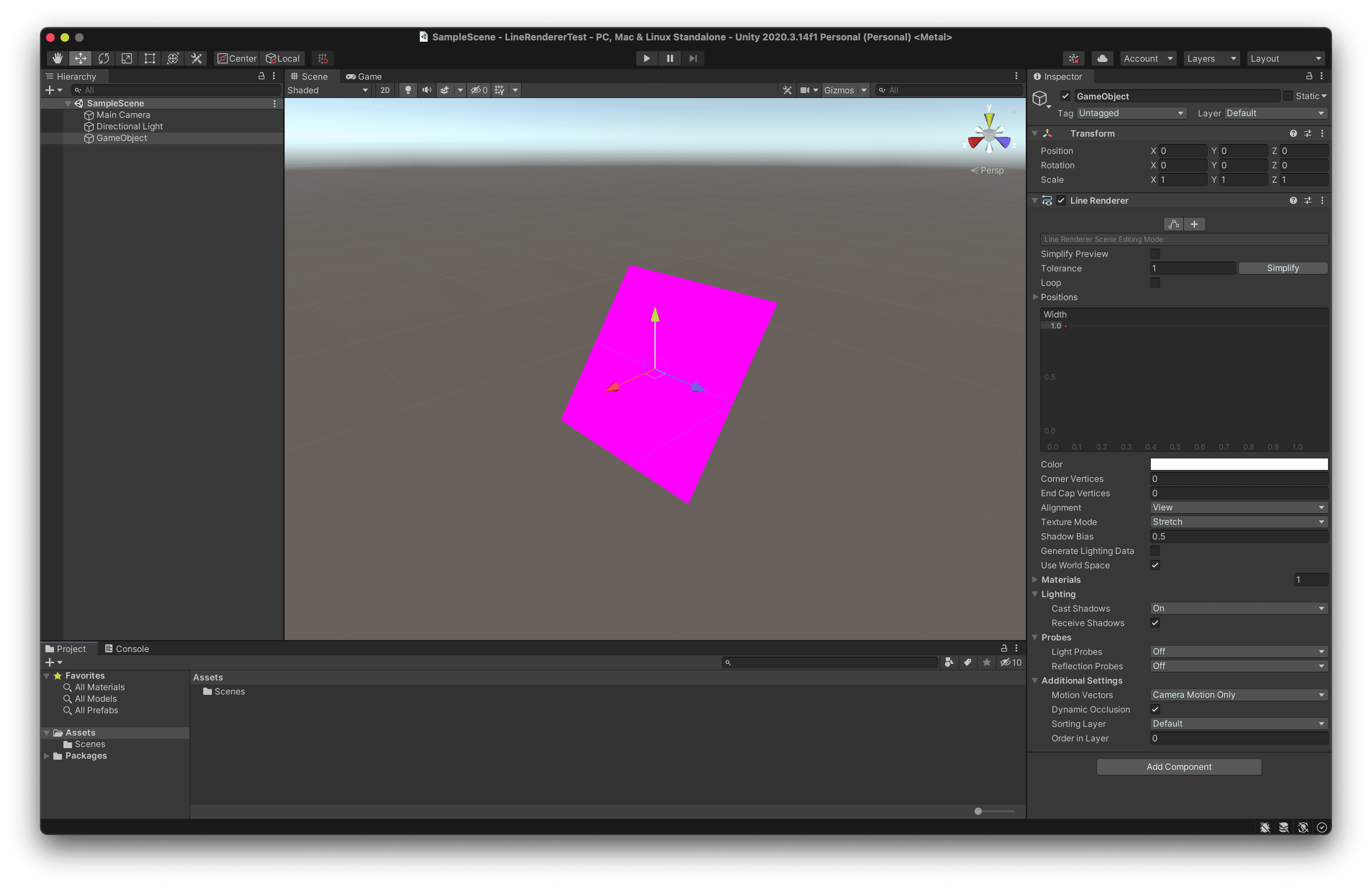 When you see the magenta color, that's a telltale sign that the LineRenderer