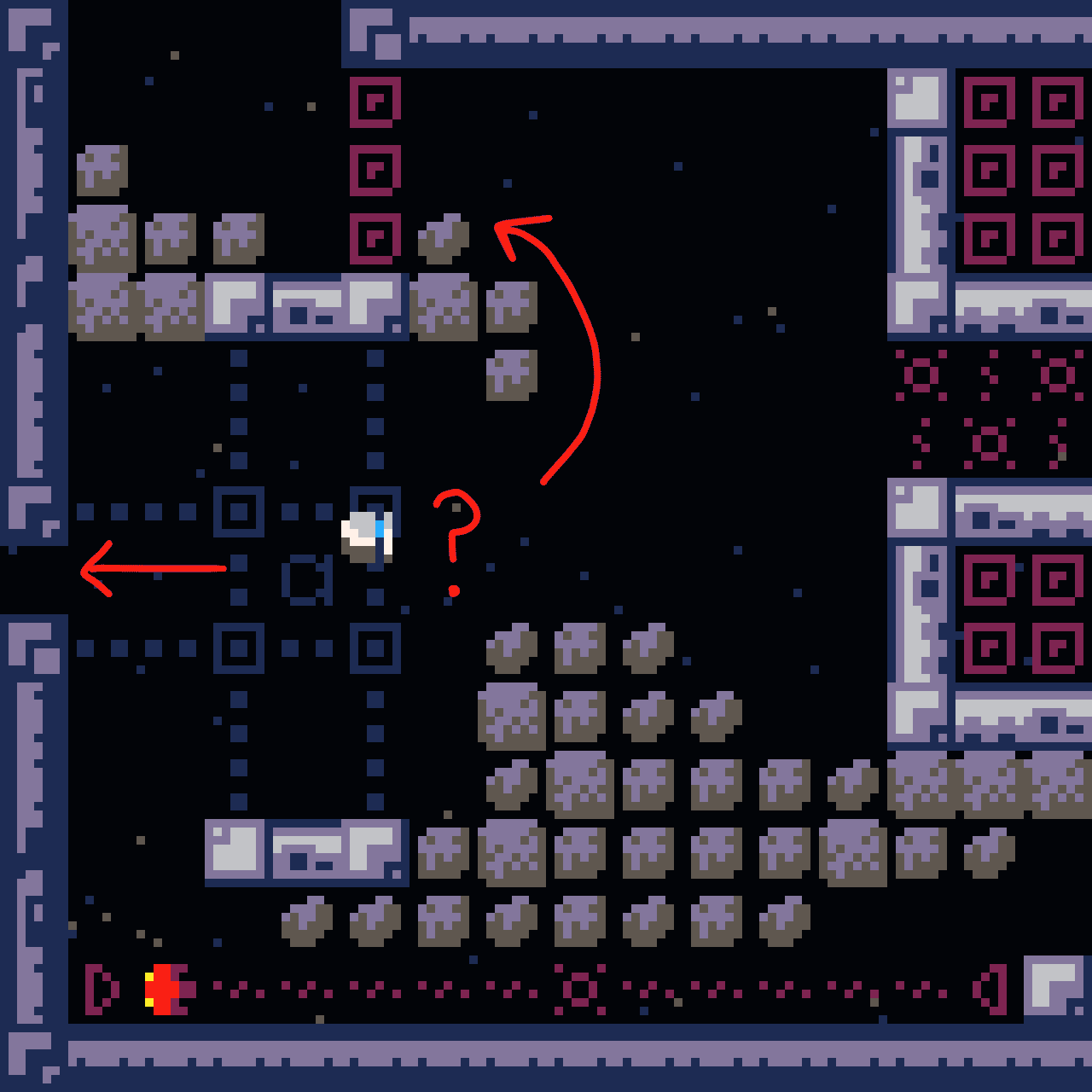 Note that the feeling of discovery doesn't arise from exploring a huge, open world. (Metrash is only as large as PICO-8's map space.)